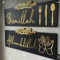 Set of 2 - Start with Bismillah End with Alhamdulillah Golden Acrylic Wooden Islamic Art